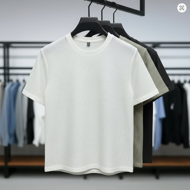 Premium Knit Texture That Actually Matters Soft, breathable fabric with a subtle textured weave that elevates any outfit. This isn't your basic tee - it's the upgrade your wardrobe deserves.